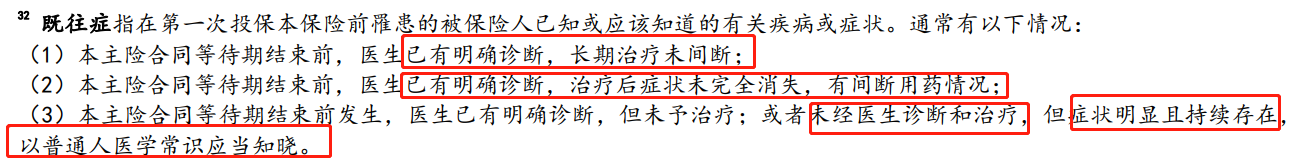 简单翻译一下,既往症是指,投保前,身体就已经有的疾病。