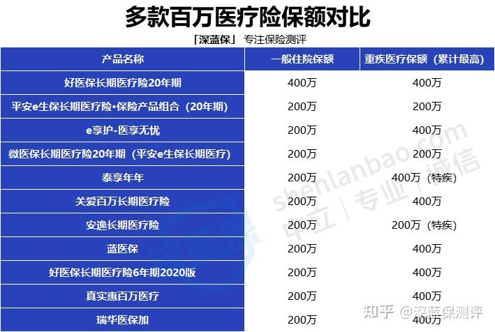 上图中有5款产品,保证续保期限长达20年,极大地增加了百万医疗险保障的稳定性。