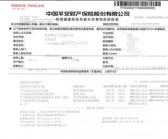 比如下面这个,学校以年级为单位买的意外险:4年保费学生就交200块。