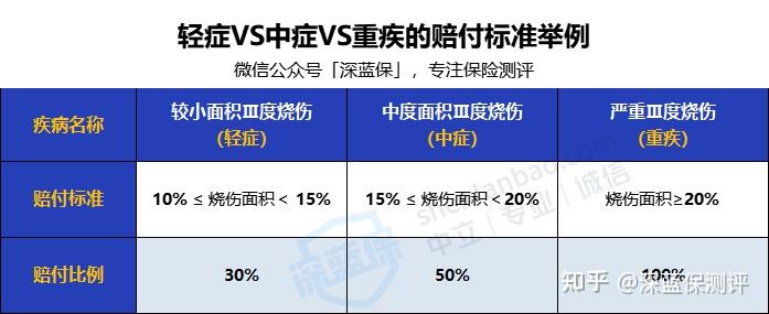 比如Ⅲ度烧伤,根据重疾险赔付标准的通常分成了轻、中、重疾三种,