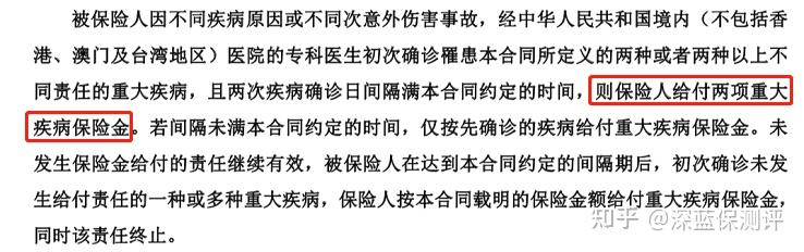 - 间隔期限制:两次赔付间隔时间有一定的限制,有的产品间隔期为1年,也有的间隔期为3年,只有间隔期结束后满足条件的重疾才能赔偿。