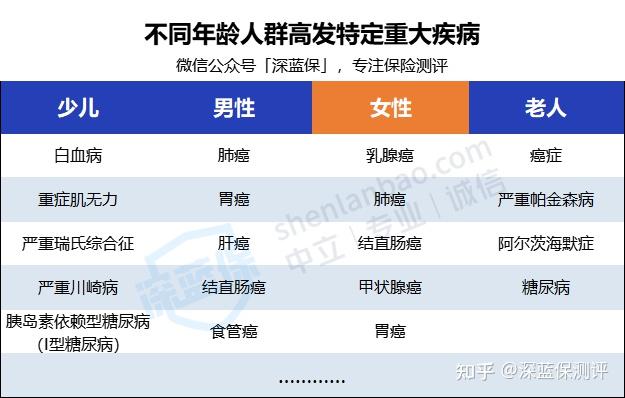 比如生活中常听到的癌症(包含肝癌、肺癌、胃癌等)、急性心肌梗死、严重脑中风后遗症(脑卒中)等。