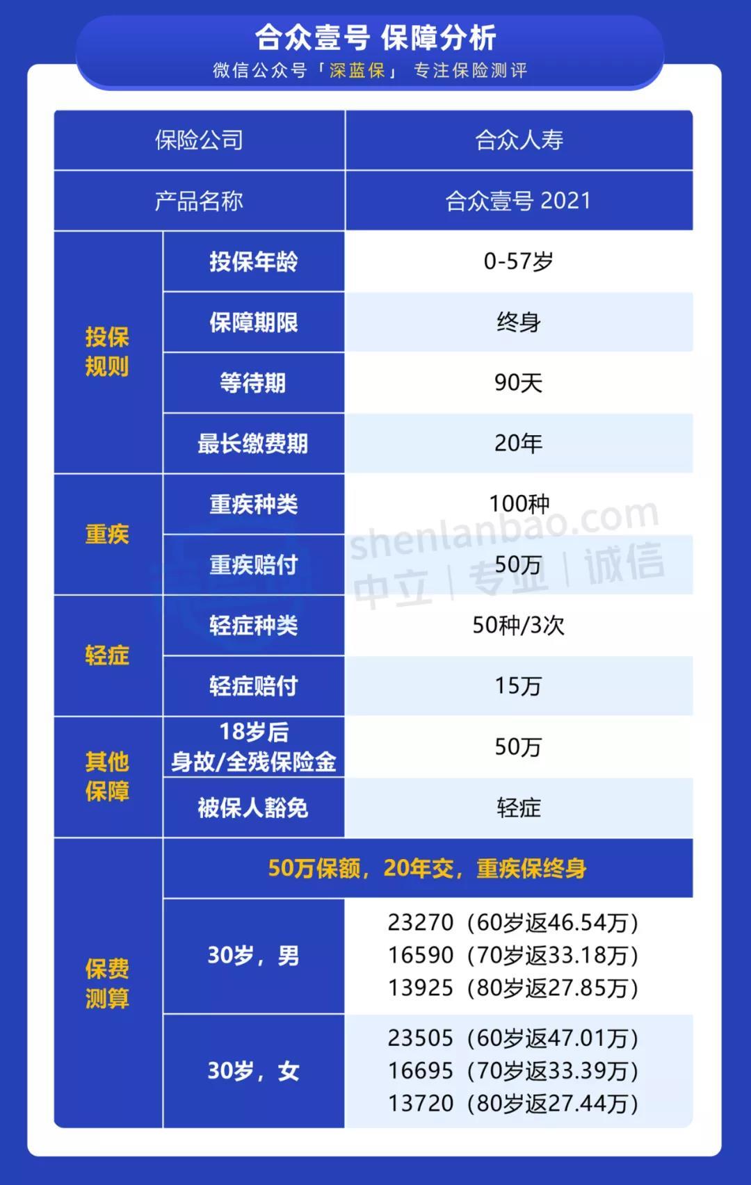 合众壹号 2021 保障很普通,只保重疾、轻症、身故,像重疾额外赔、中症等保障都没有。
