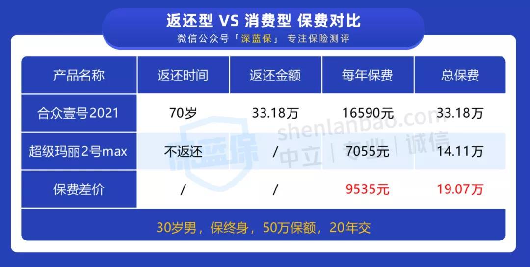 虽然合众壹号 2021 到期能返钱,但为此要付出高几倍的保费,我们觉得并不划算。