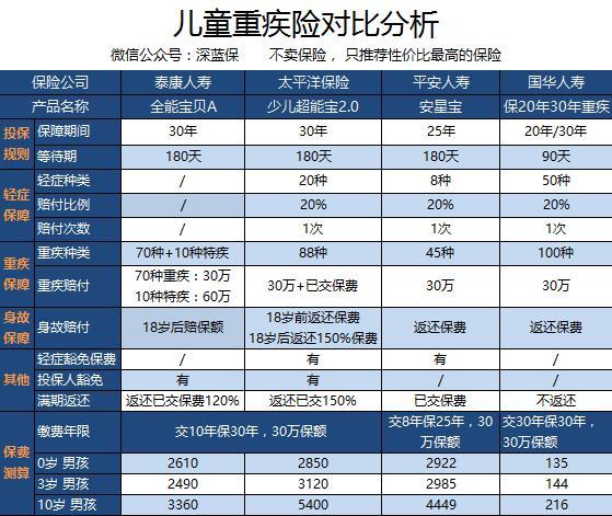 不推荐为孩子购买返还型重疾险!五款儿童重疾险对比(泰康全能宝贝A、平安安星宝、少儿超能宝2.0)